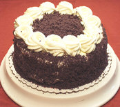 Three (3) layers of Ube chiffon cake filled w/ whipped cream between layers & covered w/ Ube crumbs. Top is decorated w/ whipped cream rosettes.