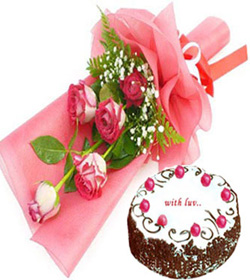 Haft dozen pink roses bouquet w/ cake for your someone special.Your gift will come with a greeting card