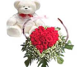 Express your feelings to your spouse/ sweetheart/ loved one with these heartfelt gifts..... (5 dozen red roses and 24" teddy bear).